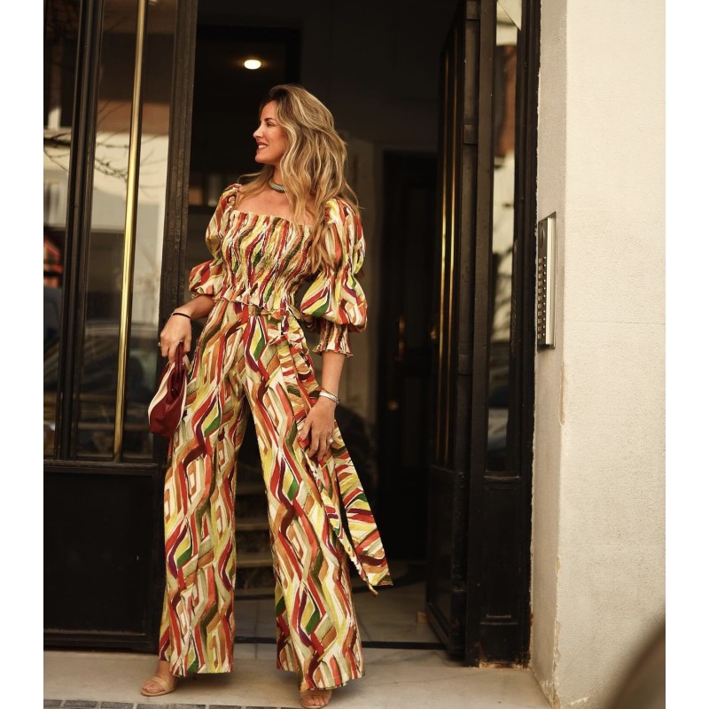 Además, se establece un estampado único y unas mangas abullonadas llenas de personalidad, que combinan perfectas con el pantalón Dalia.